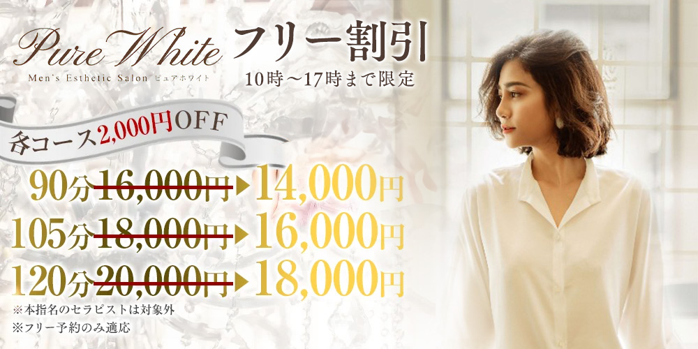 ※ピュアホワイト在籍のセラピストは適用できませんのでご注意下さい。